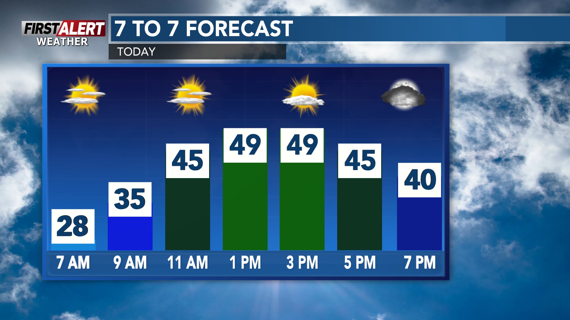 Mainly sunny skies & calmer winds on Thursday