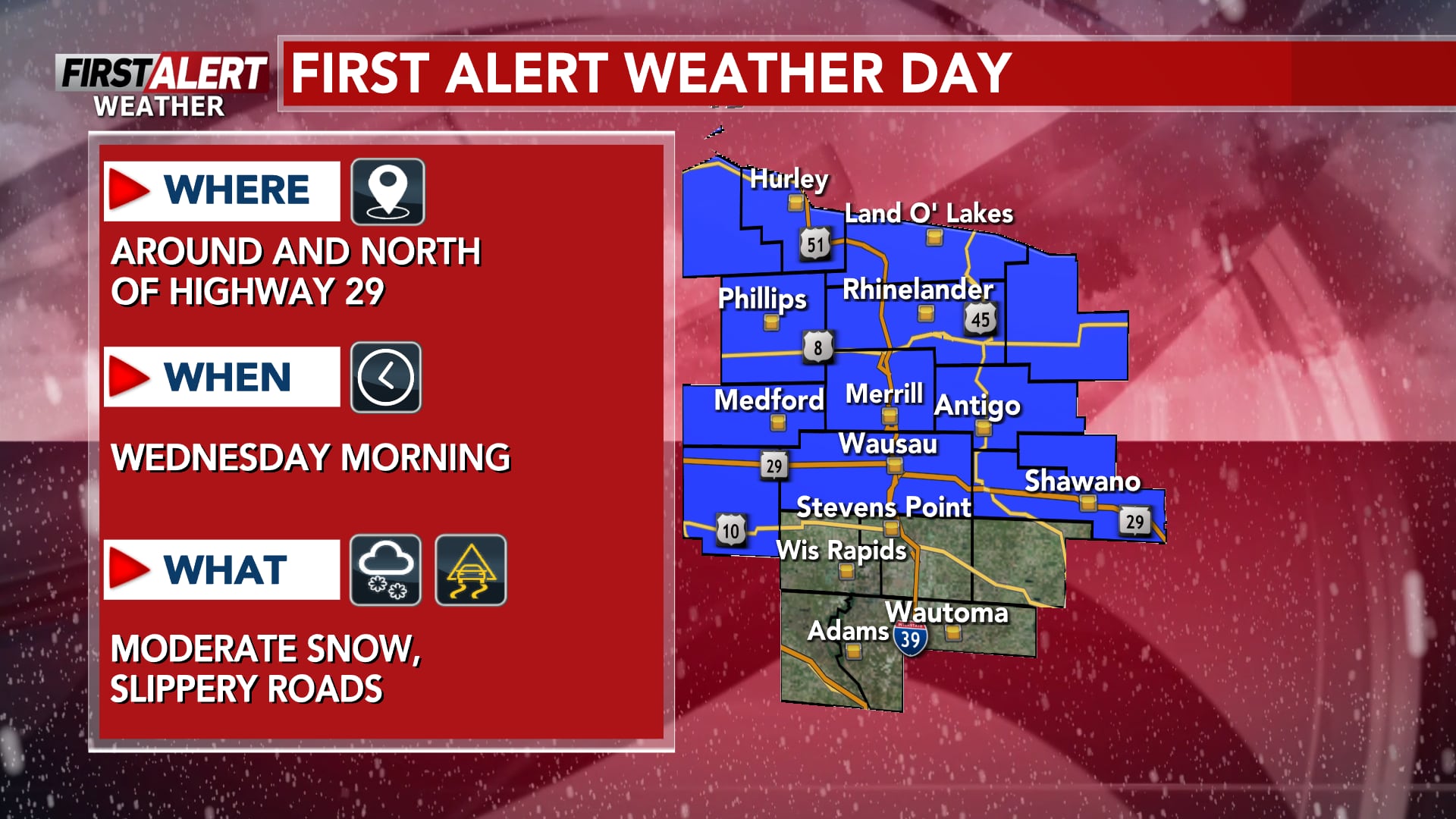 First Alert Weather Day for Wednesday morning due to snow up north
